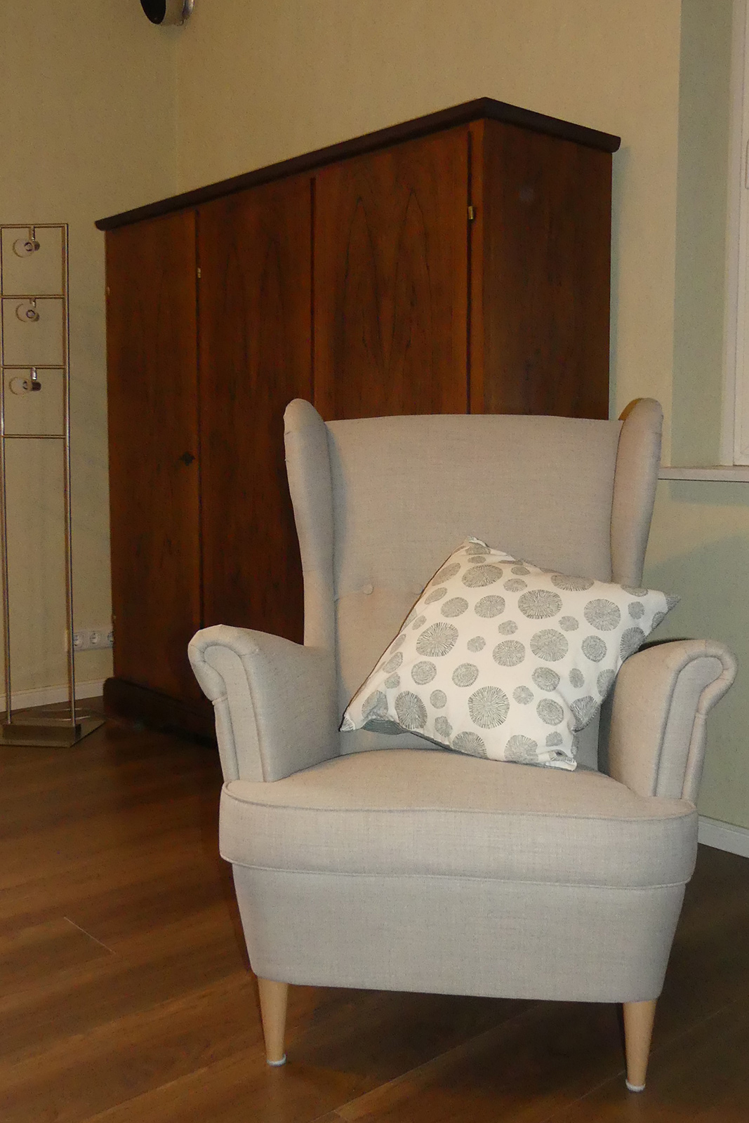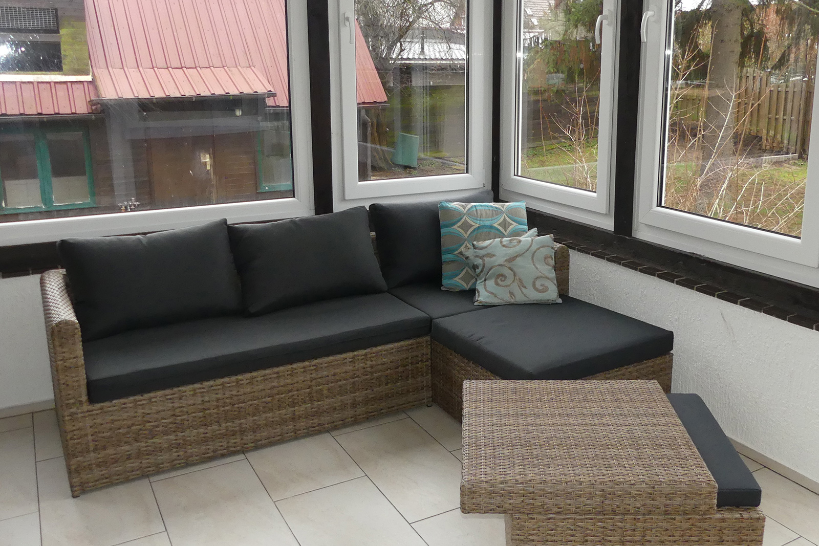 Das Grundstück mit seinen alten Bäumen und der großen Rasenfläche können Sie für Spiele oder zum Sonnen nutzen. Auch ein kleiner Gartenteich fügt sich harmonisch in das Gesamtbild ein. Bitte achten Sie auf Ihre Kinder. Gartenmöbel und ein Holzkohlegrill sind vorhanden.