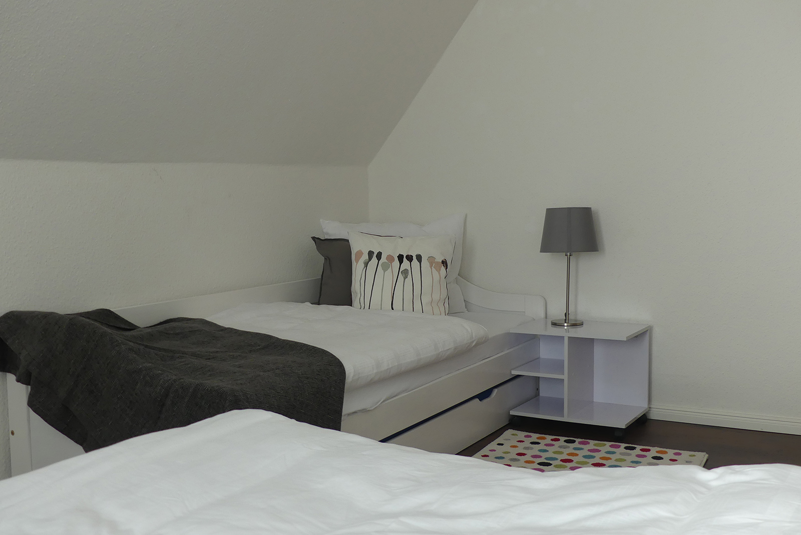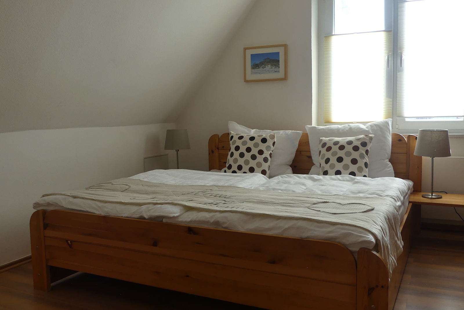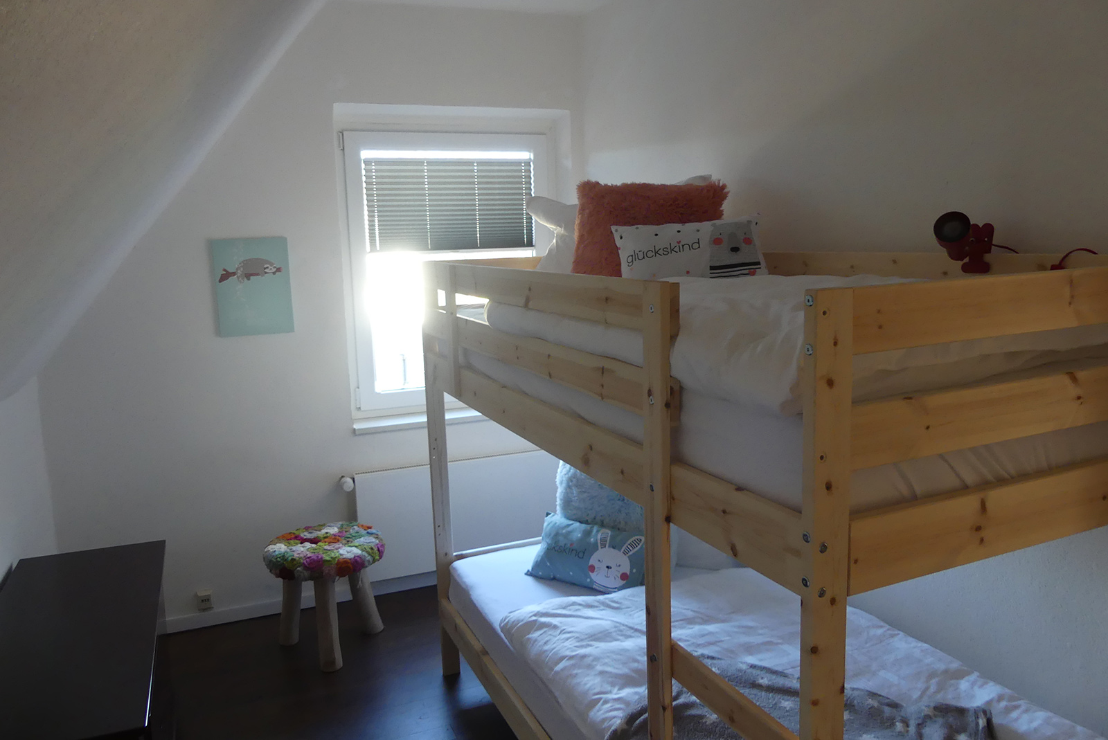 In der voll ausgestatteten Küche wird es Ihnen an nichts fehlen. Neben einem Kühlschrank mit Gefrierfach erwarten Sie hier ein Herd mit Ceranfeld und Backofen, ein Geschirrspüler, eine Spüle sowie Wasserkocher, Kaffeemaschine und Toaster. Ein kleiner Tisch und Stühle sind ebenfalls vorhanden. In den Bädern befinden sich Dusche, WC, Spiegel und Fön. Alle Schlafzimmer haben ein Doppelbett und einen Kleiderschrank. In beiden Schlafzimmern im Obergeschoß befindet sich zusätzlich je ein Einzelbett. Das Kinderzimmer ist mit Stockbett (200 x 90 cm) Spieltisch, Hockern und Kommode eingerichtet.